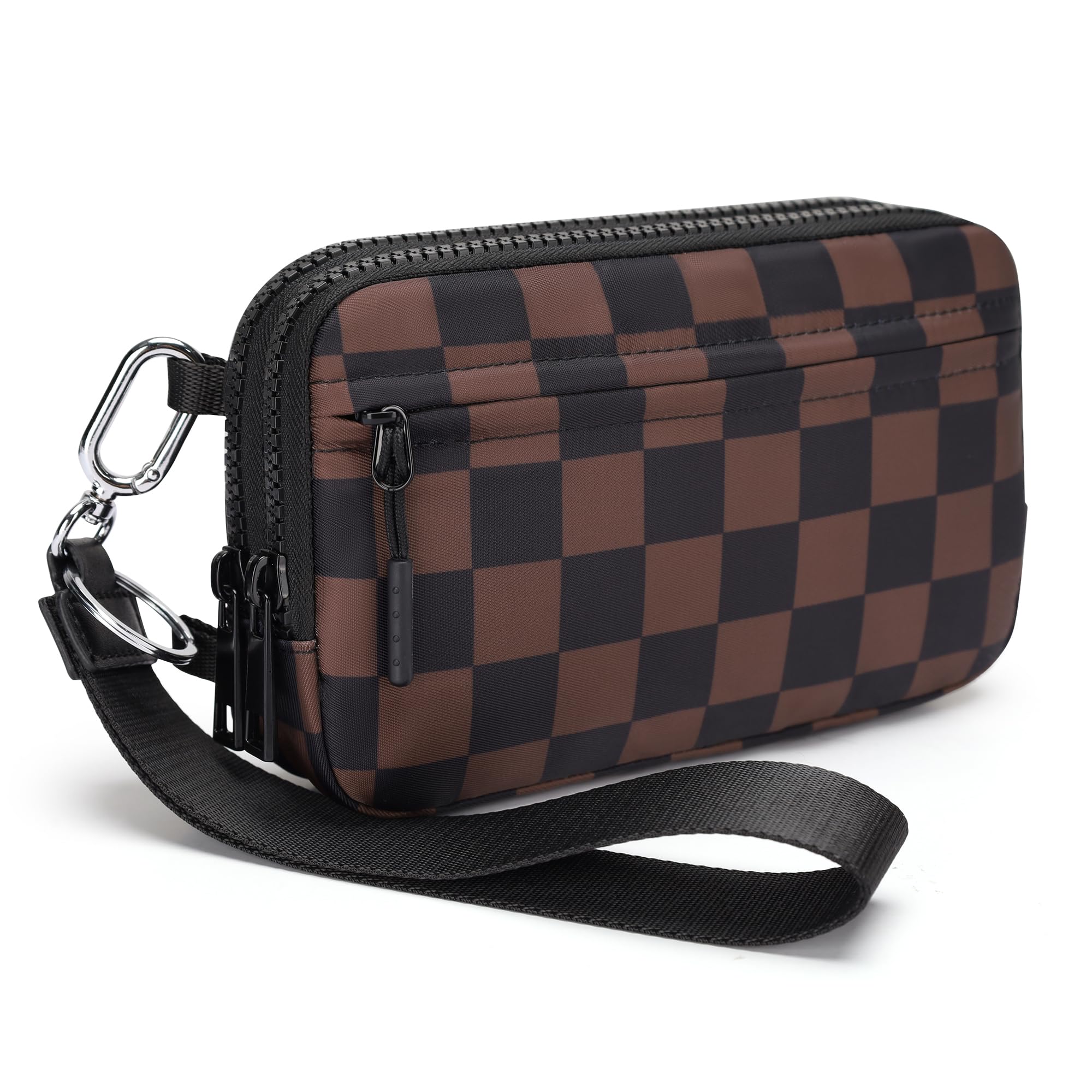 Ounamei Quilted Nylon Wristlet Crossbody Wallet for Women 4-Zipper Small Bag with RFID Protection & Adjustable Strap