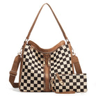 Ounamei Checkered Hobo Tote Bag with a Pouch for Women | PU Leather & Canvas Shoulder & Crossbody Handbag for Daily Use