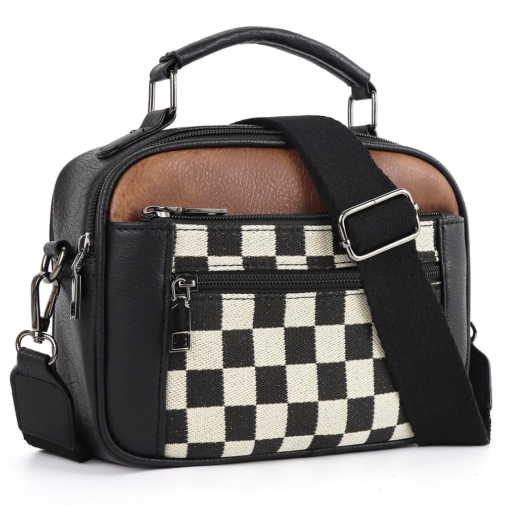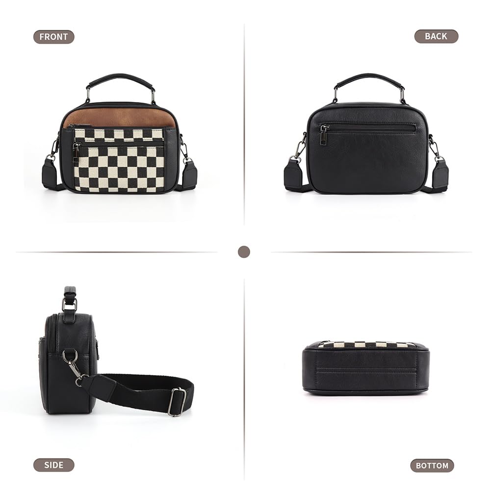 Ounamei Checkered Crossbody Bag for Women | PU Leather Plaid Shoulder Purse with Adjustable Strap, Available in Handle & Handle-Free Styles