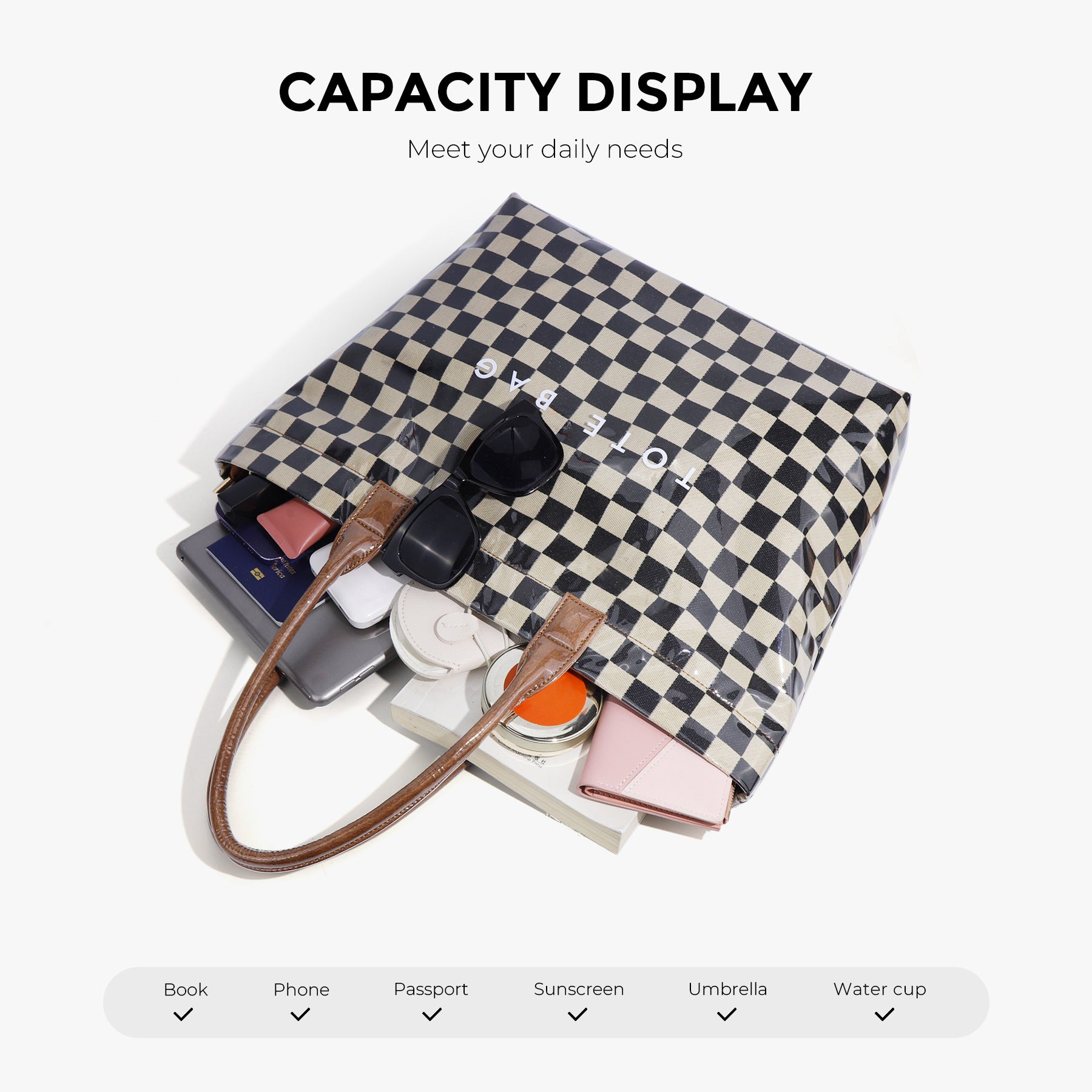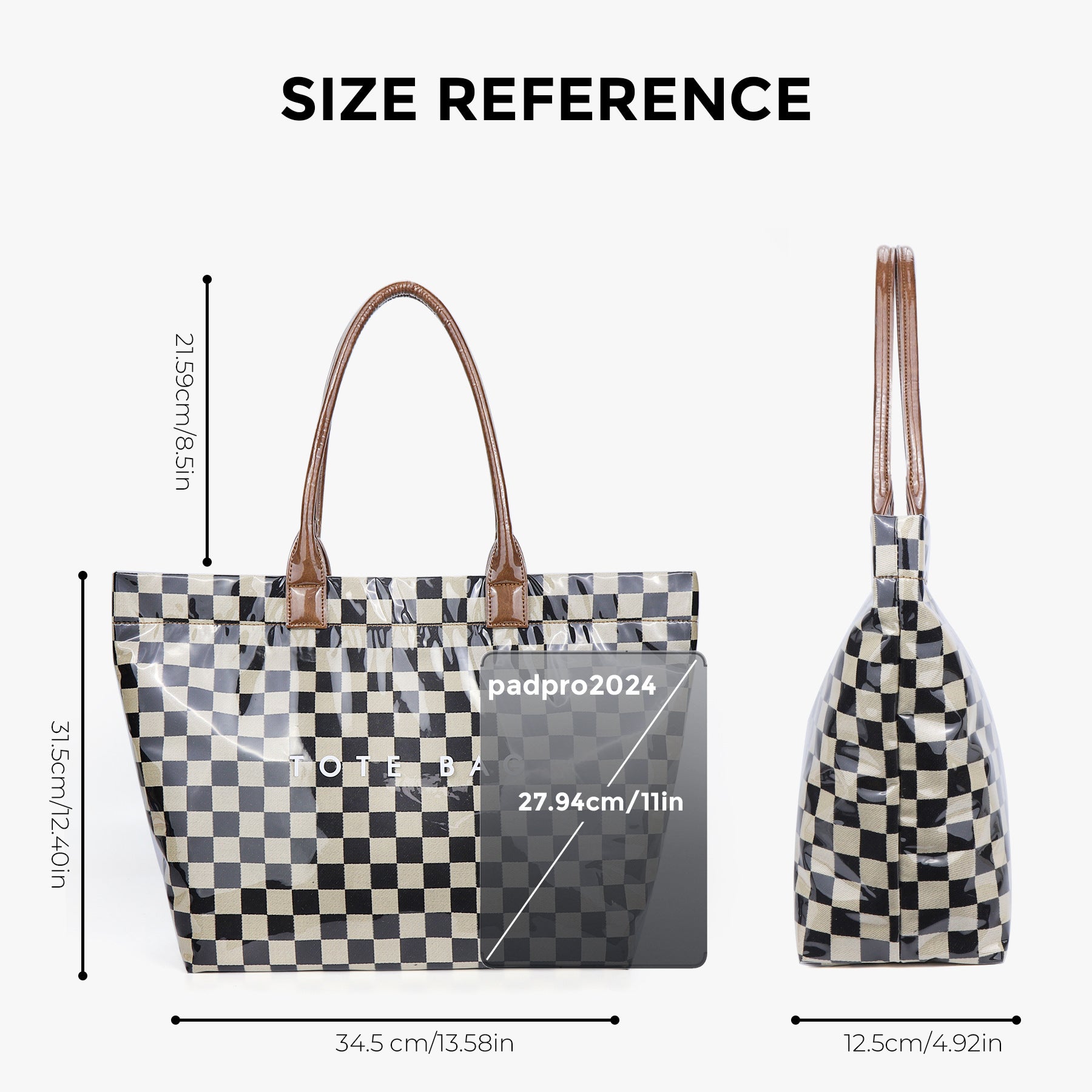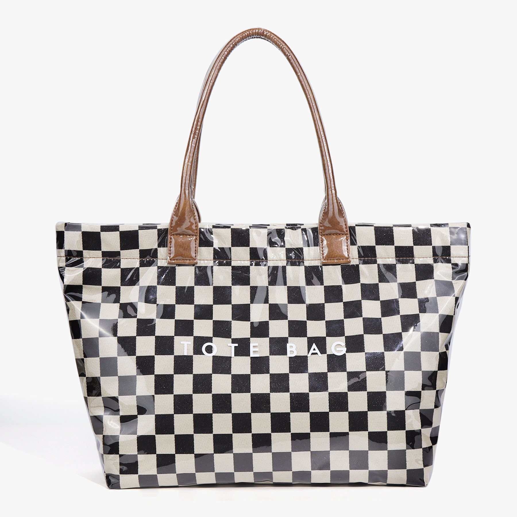 Women Checkered PVC Laptop Tote Bag 15.6 Inch