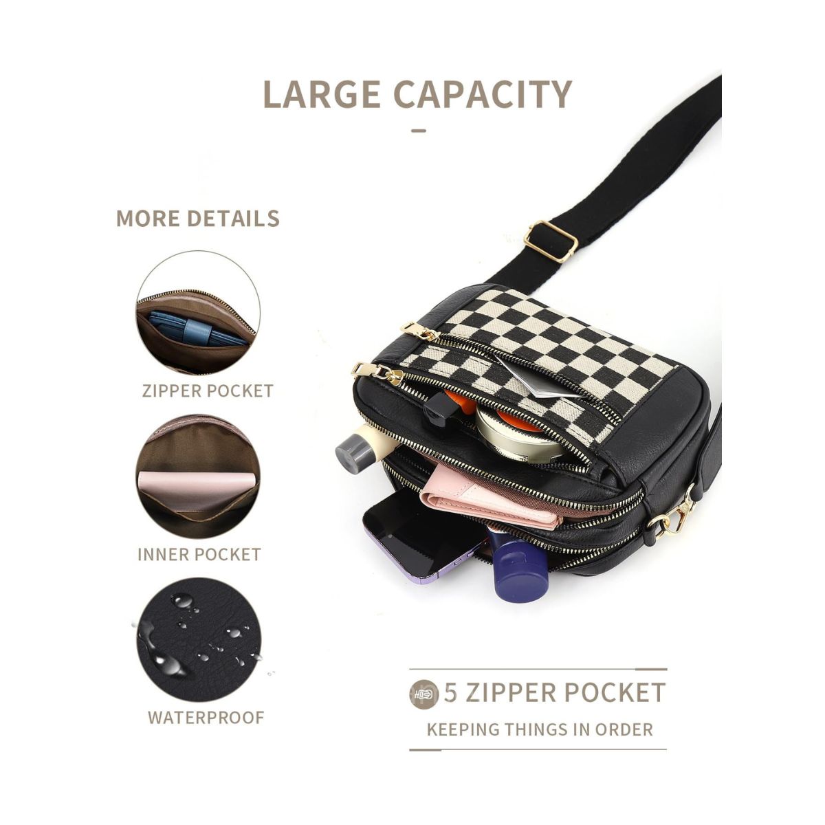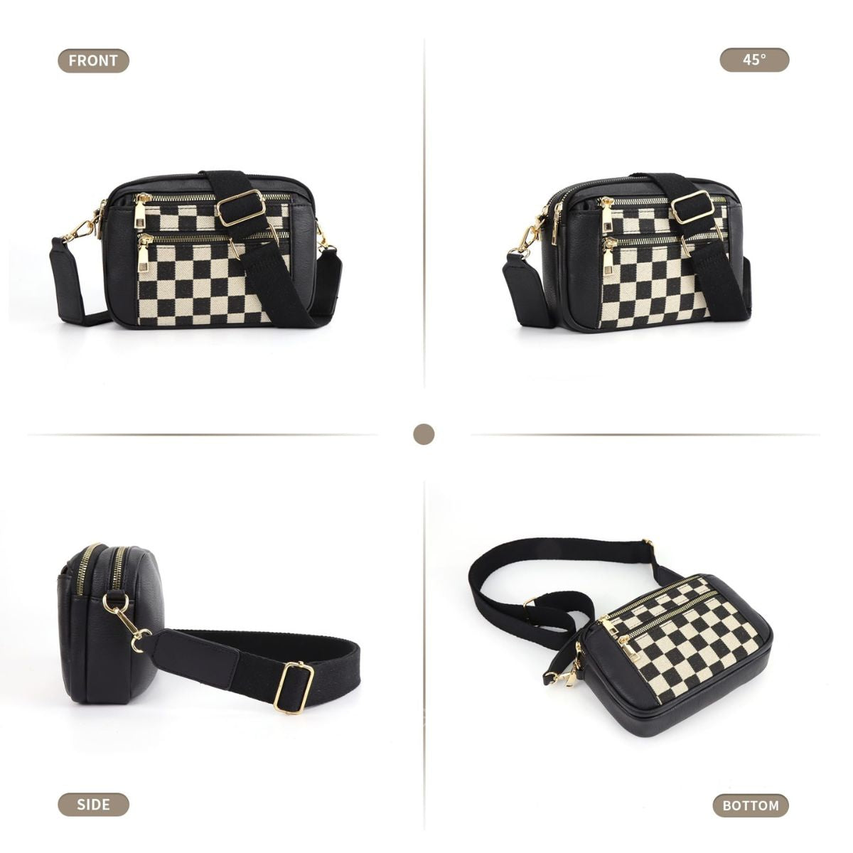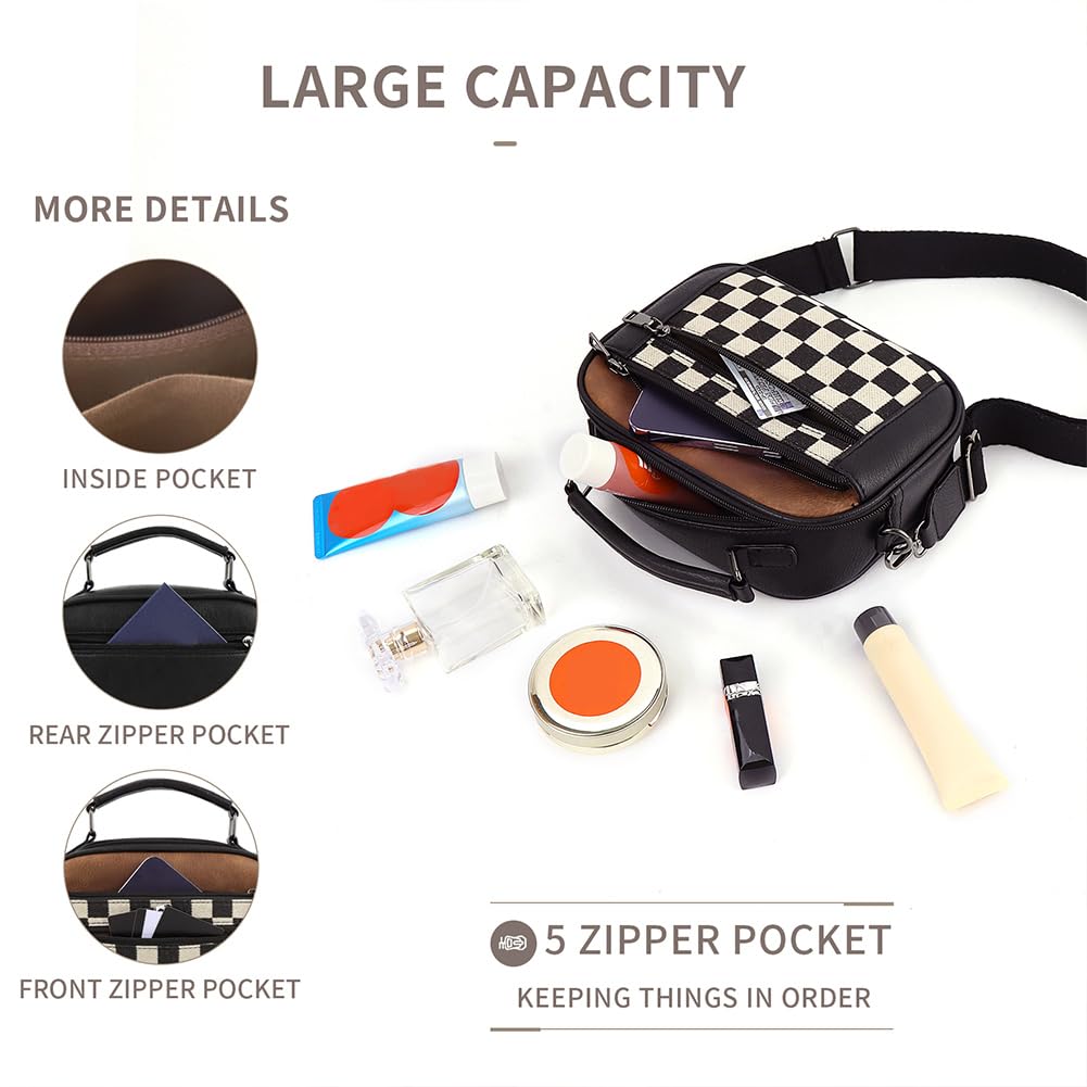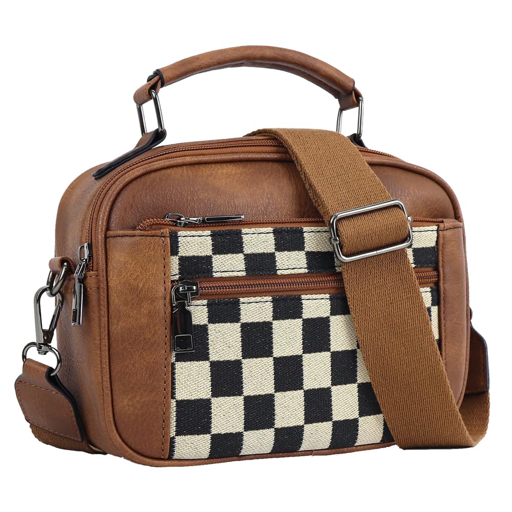 Ounamei Checkered Crossbody Bag for Women | PU Leather Plaid Shoulder Purse with Adjustable Strap, Available in Handle & Handle-Free Styles