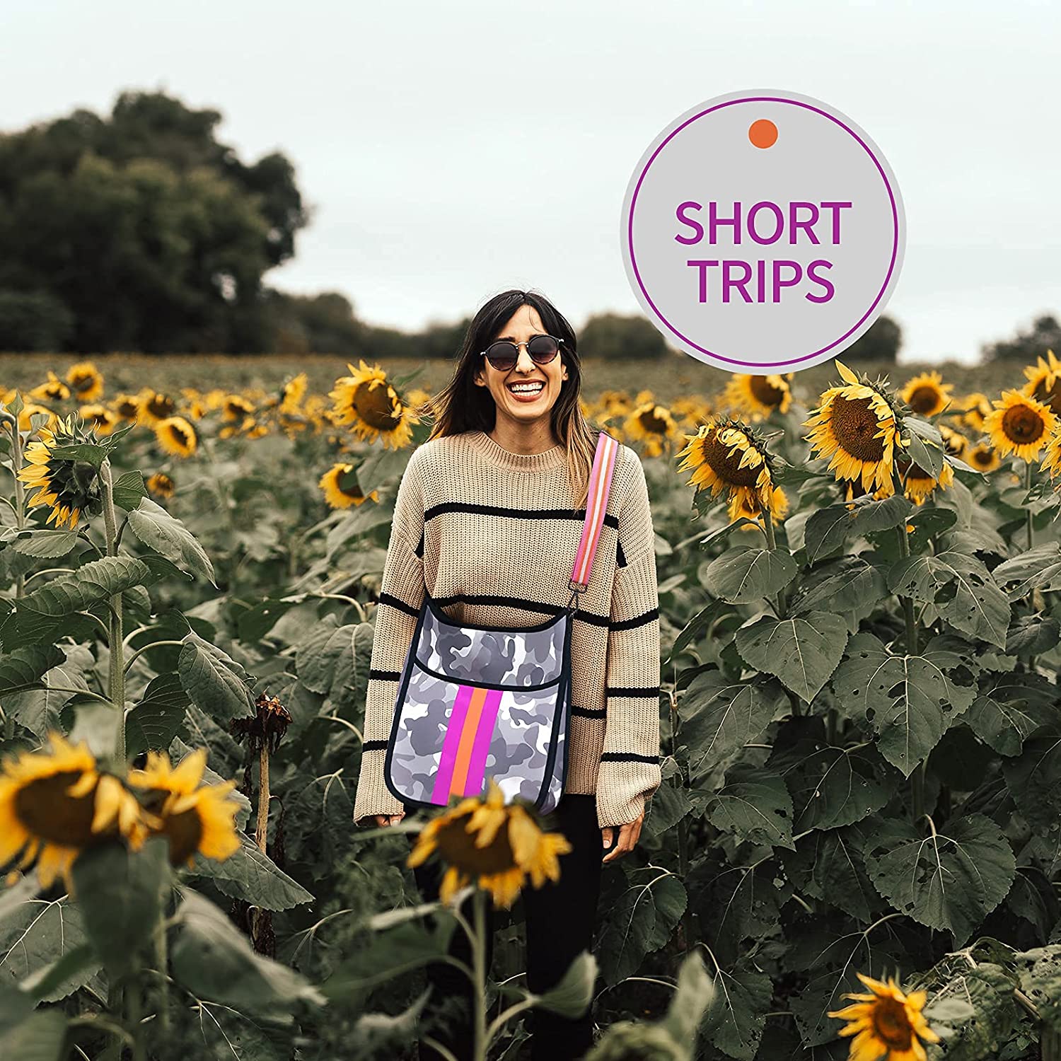 Easy Usage: Come in size 10.6 x12.6 x 3.9 inches that offer sufficient room for cell phones, headphones, sunglasses, keys, pocketbook, makeup, passport, etc. Easy to carry around and access things. It can be used as messenger bag, small cross body bag, purses and handbags, etc.