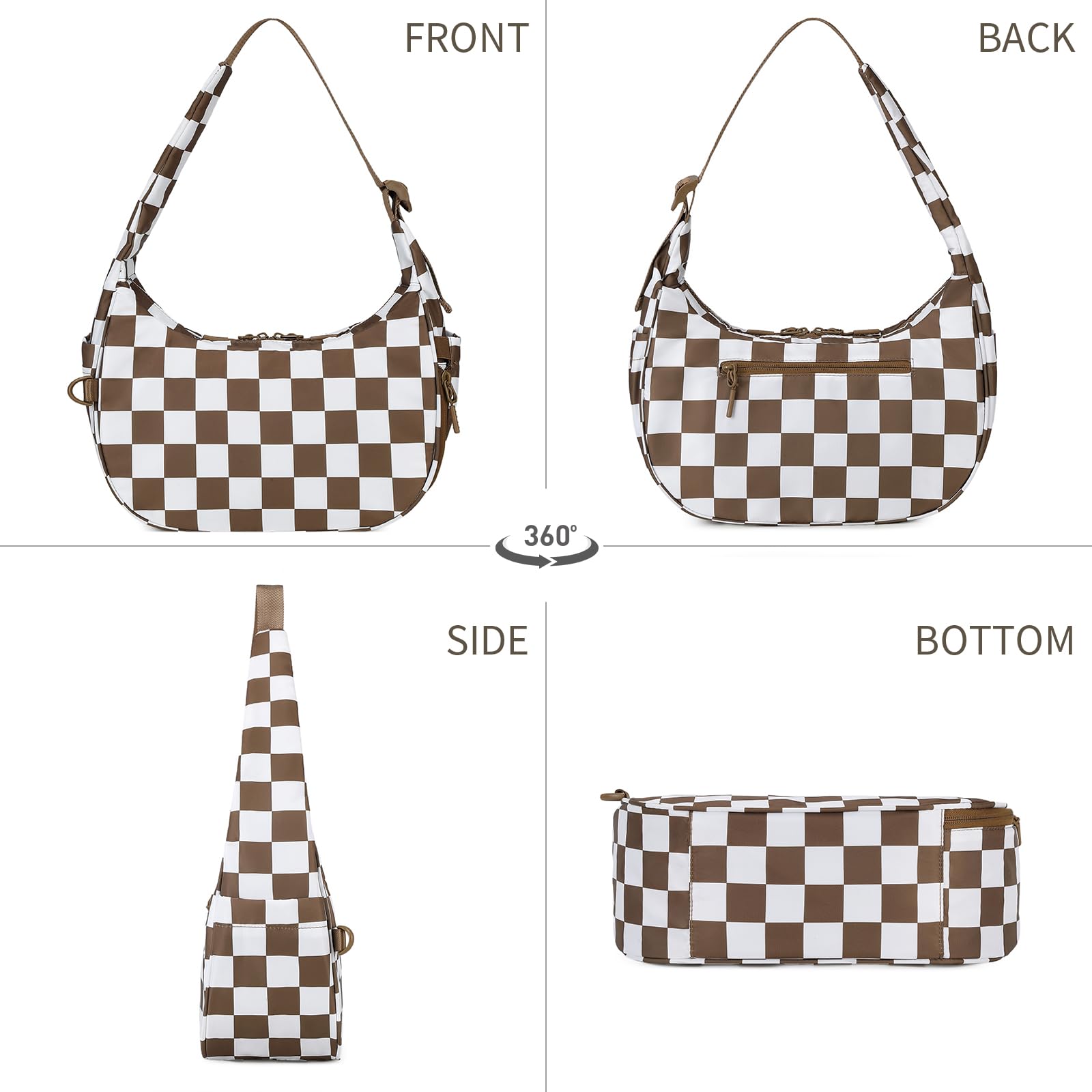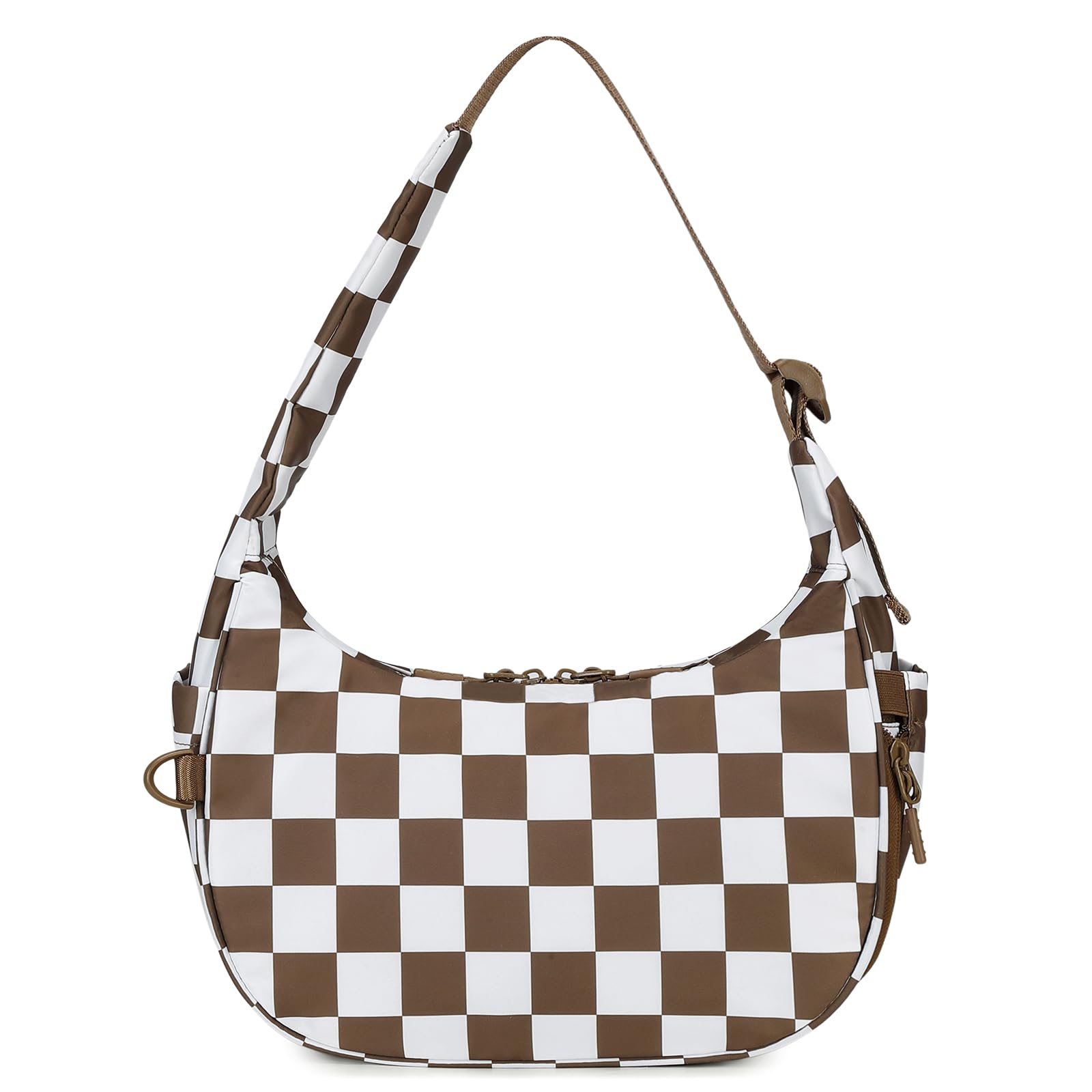 Ounamei Checkered Crescent Shoulder Bag | Women's Underarm hobo handbags Nylon Small Tote Bag
