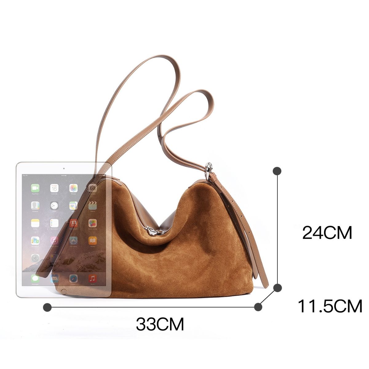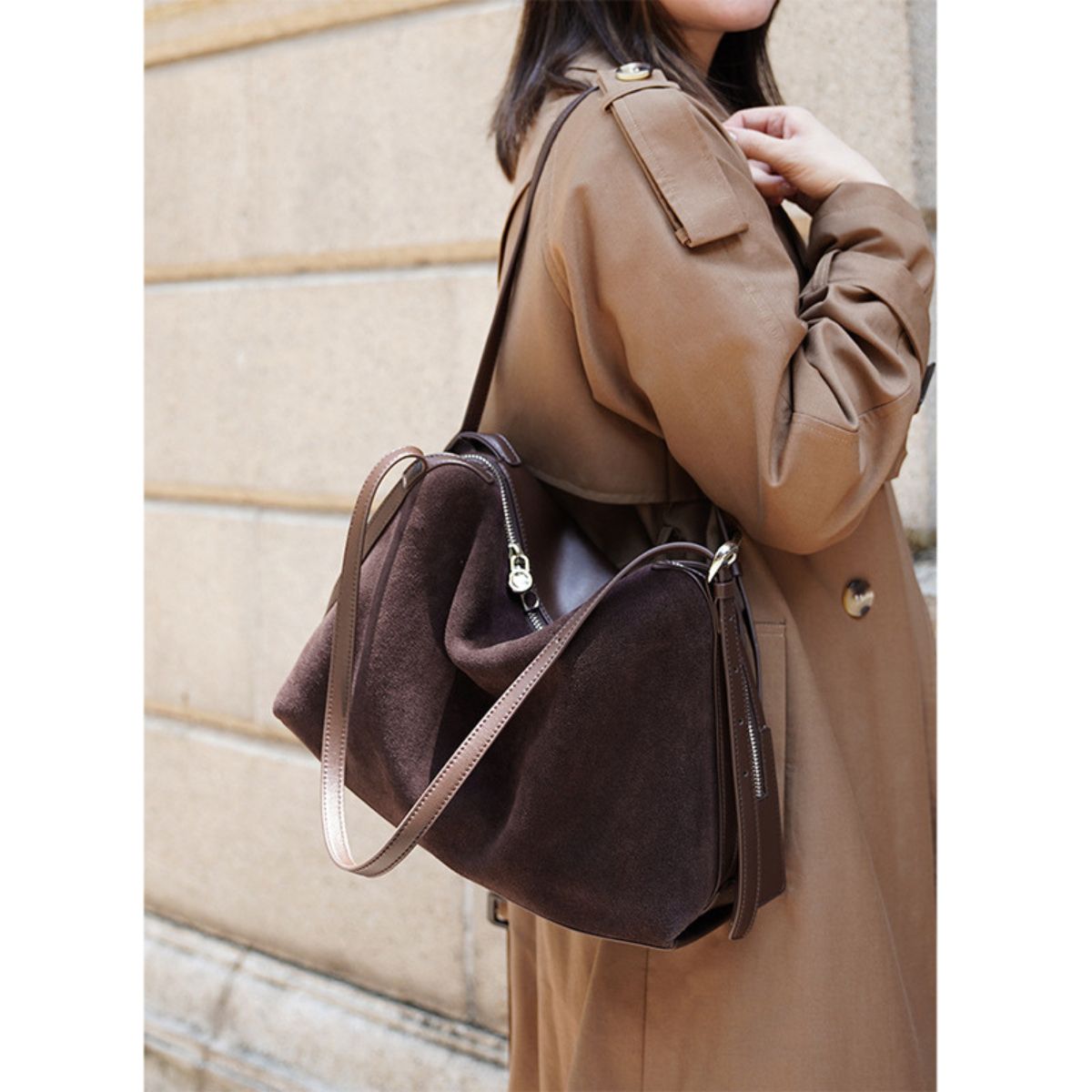 Classic Suede Leather Tote Bag for Women, Large Capacity Shoulder Handbag, Soft Suede Cowhide Work & Everyday Bag