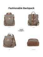 Ounamei Checkered Canvas Backpack Purse for Women with Matching Pouch | Large Capacity Travel & Daily Bag