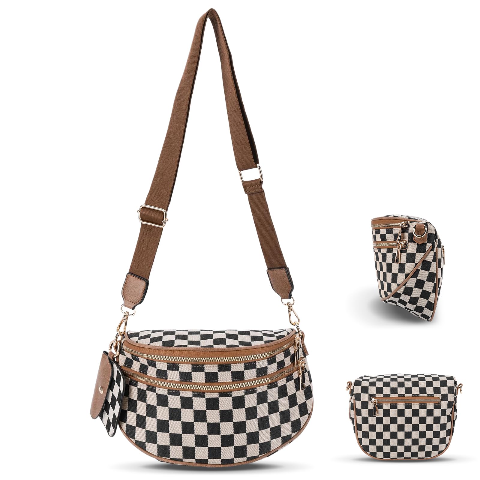 Ounamei Checkered Crossbody Bum Bag for Women Large Capacity Belt Bag for Moms & Everyday Travel