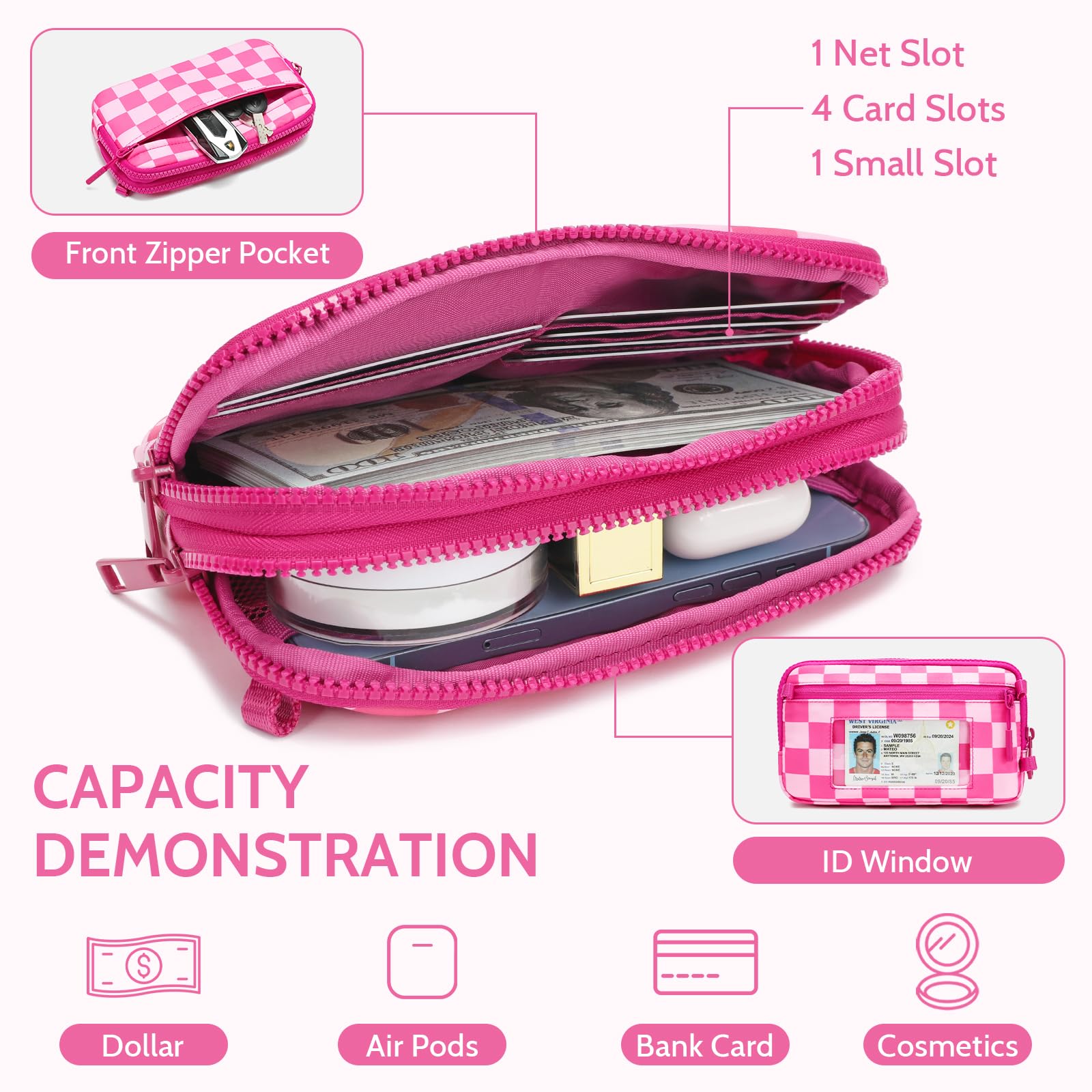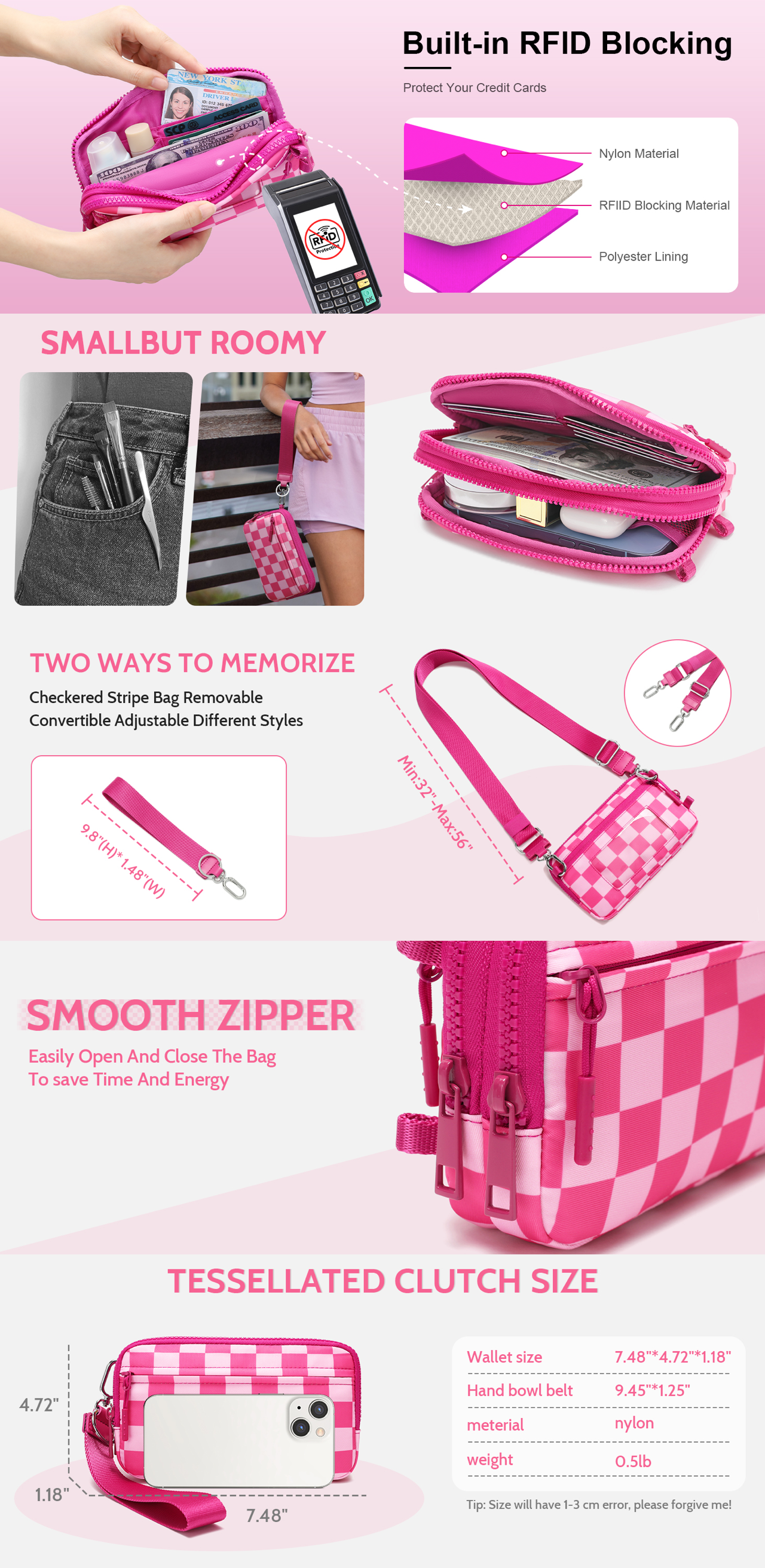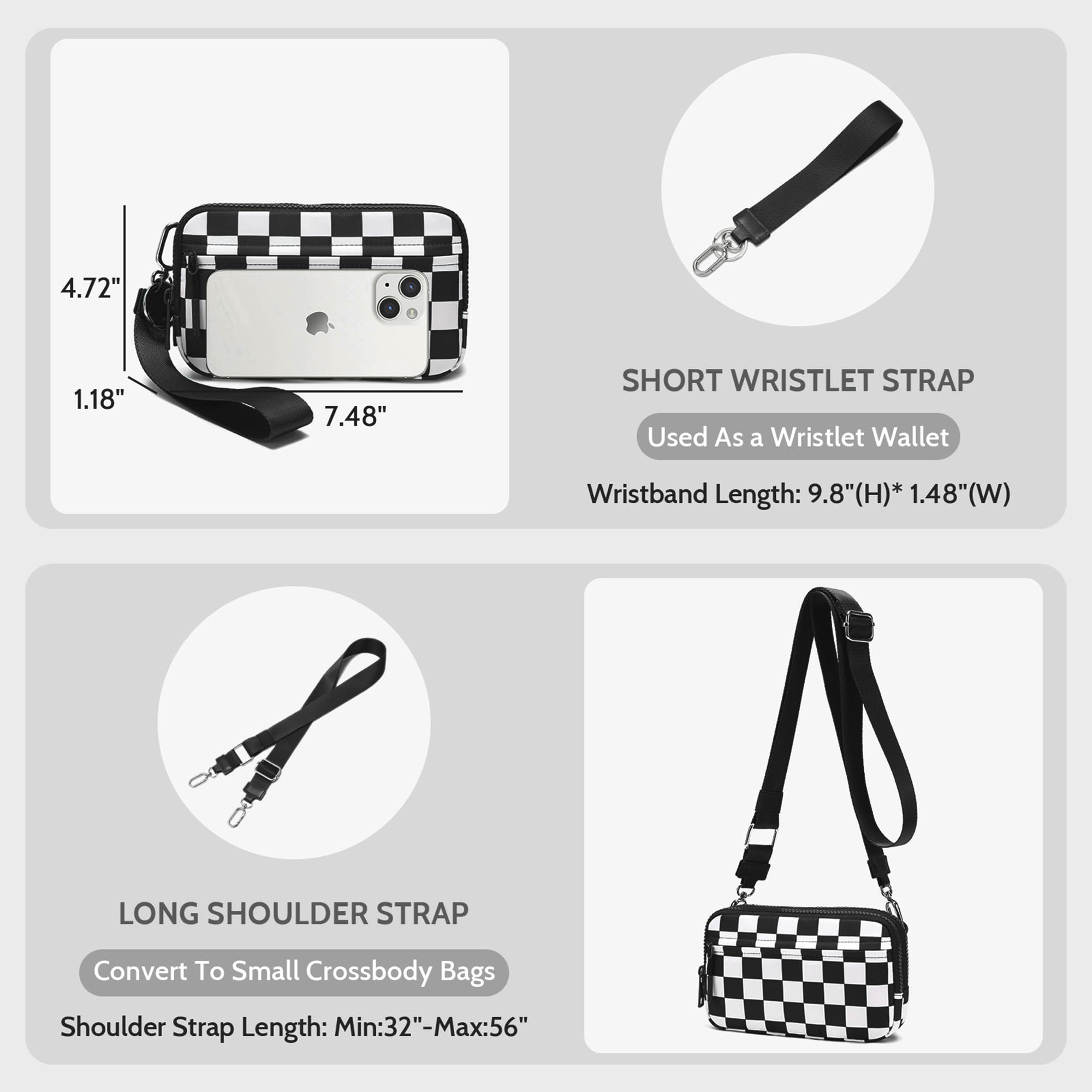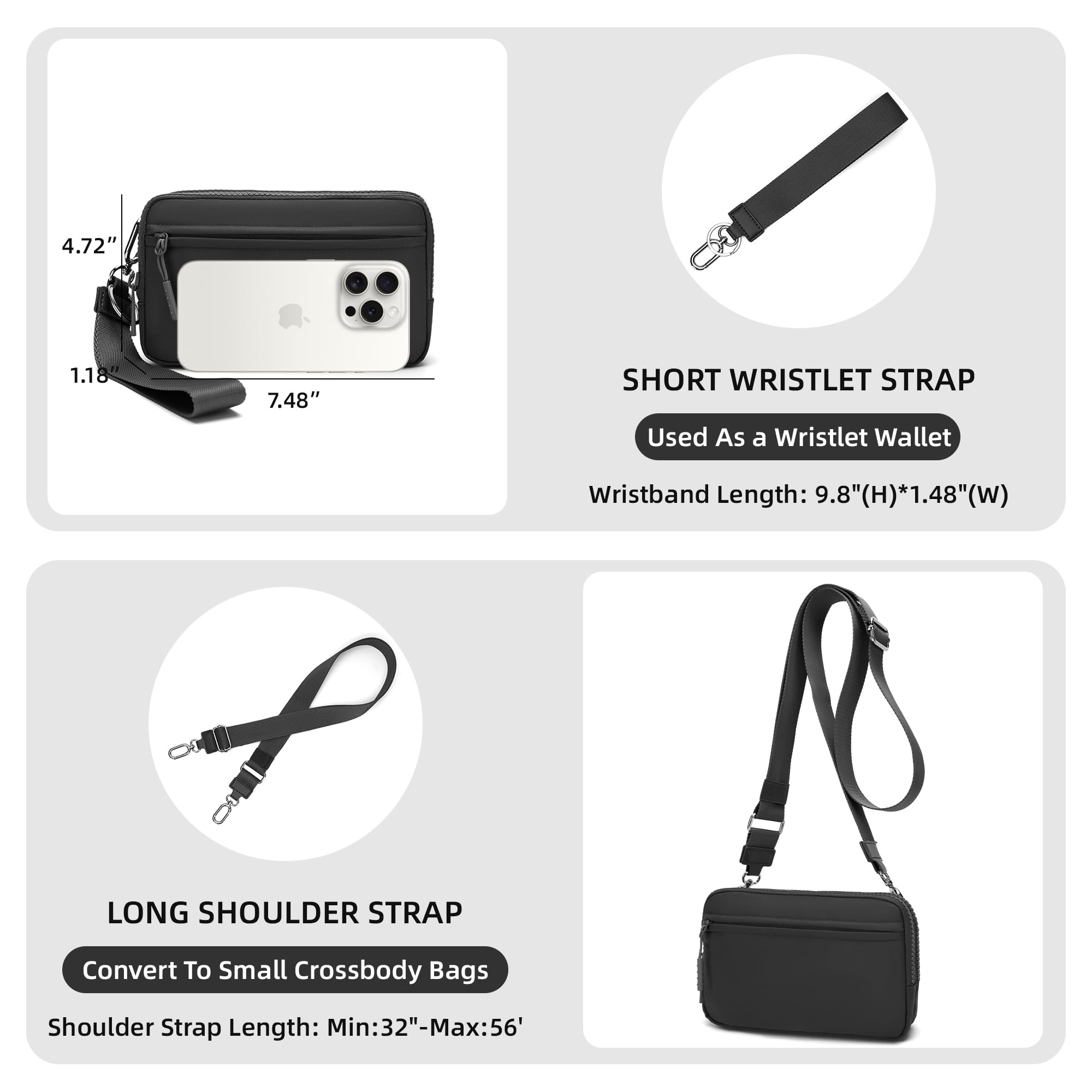 Wear it your way – as a wristlet, crossbody, shoulder bag, or chest bag. With an adjustable strap (32" to 56") and detachable wrist strap, you can instantly switch styles to suit any occasion. Perfect for women who need convenience without compromising on elegance.