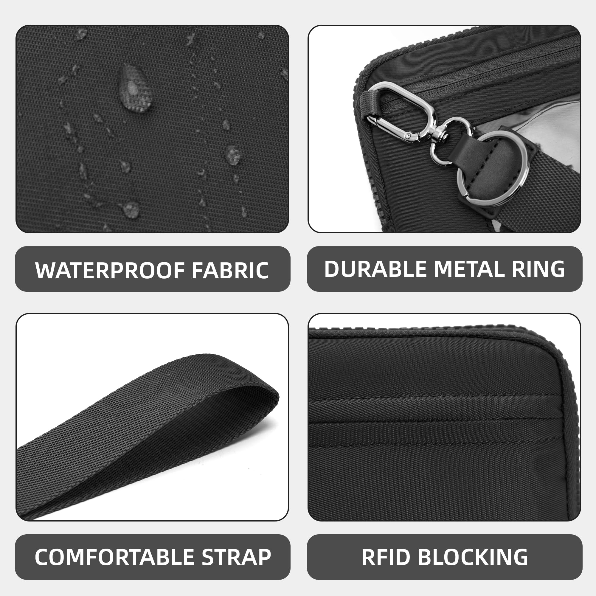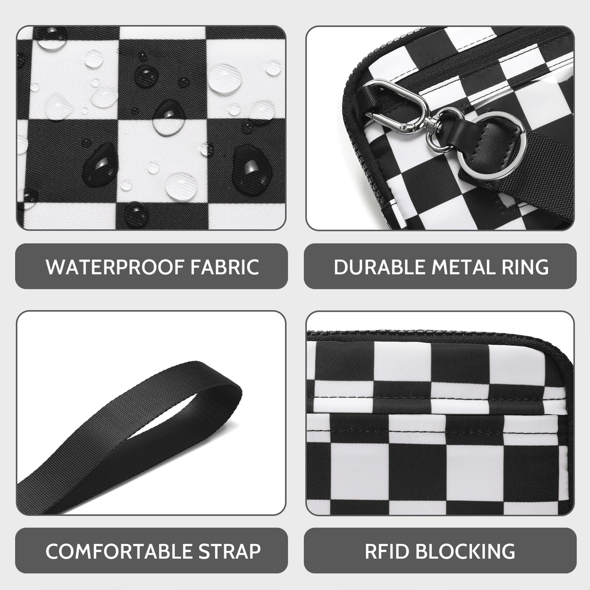 Ounamei Quilted Nylon Wristlet Crossbody Wallet for Women 4-Zipper Small Bag with RFID Protection & Adjustable Strap