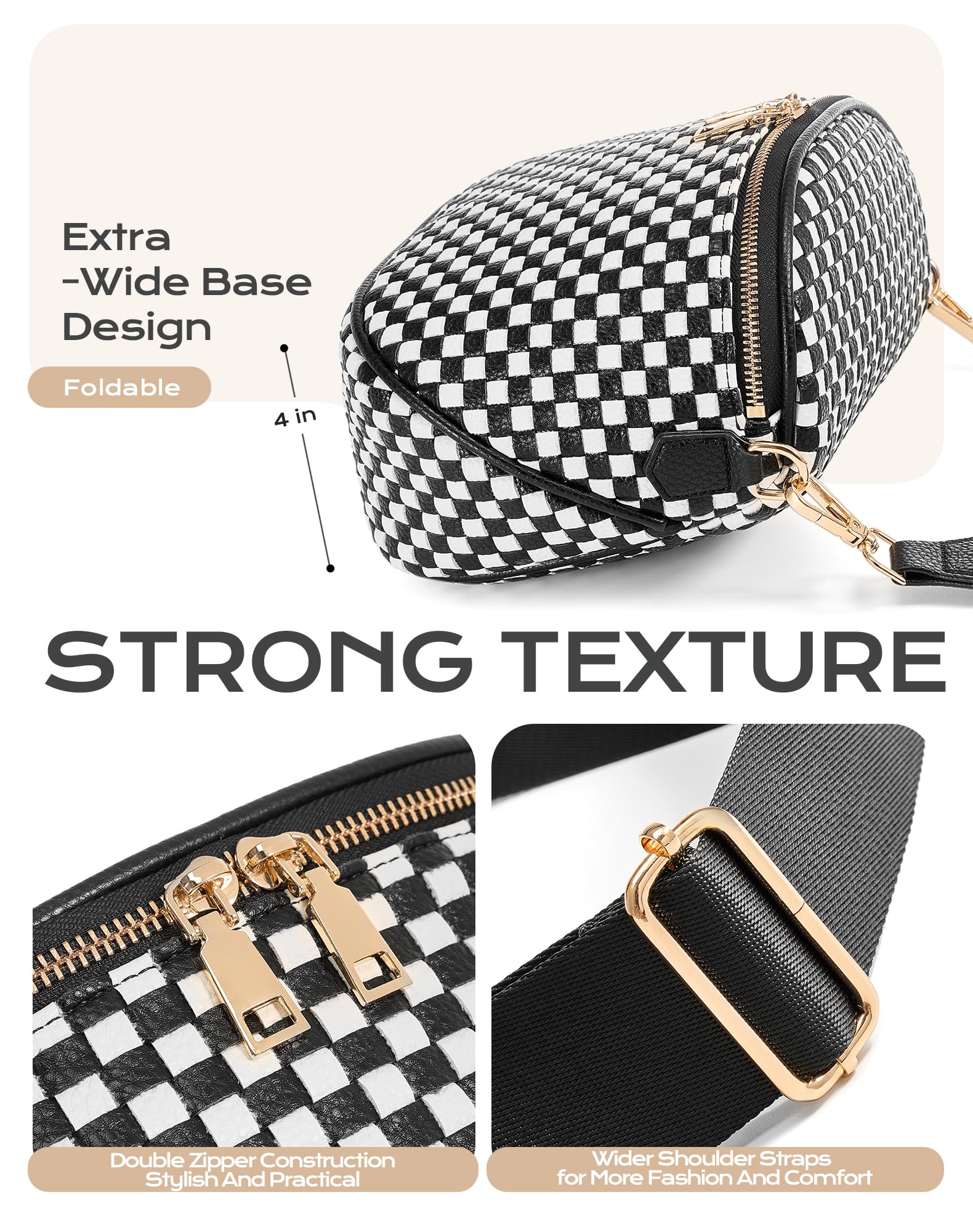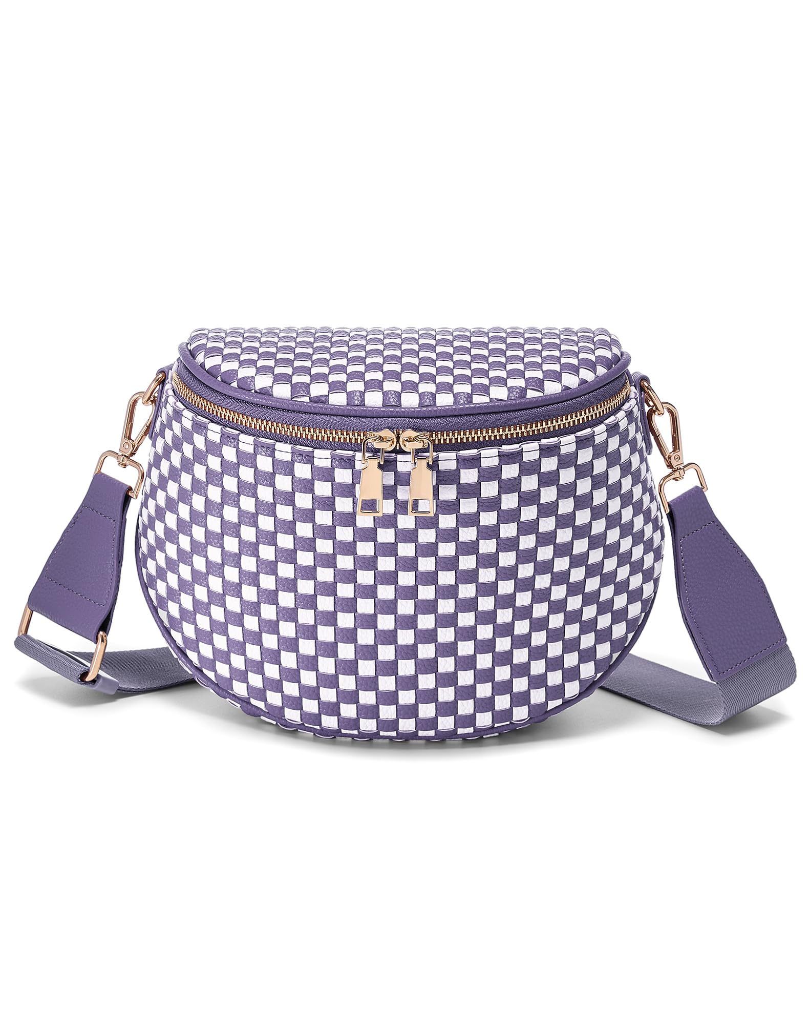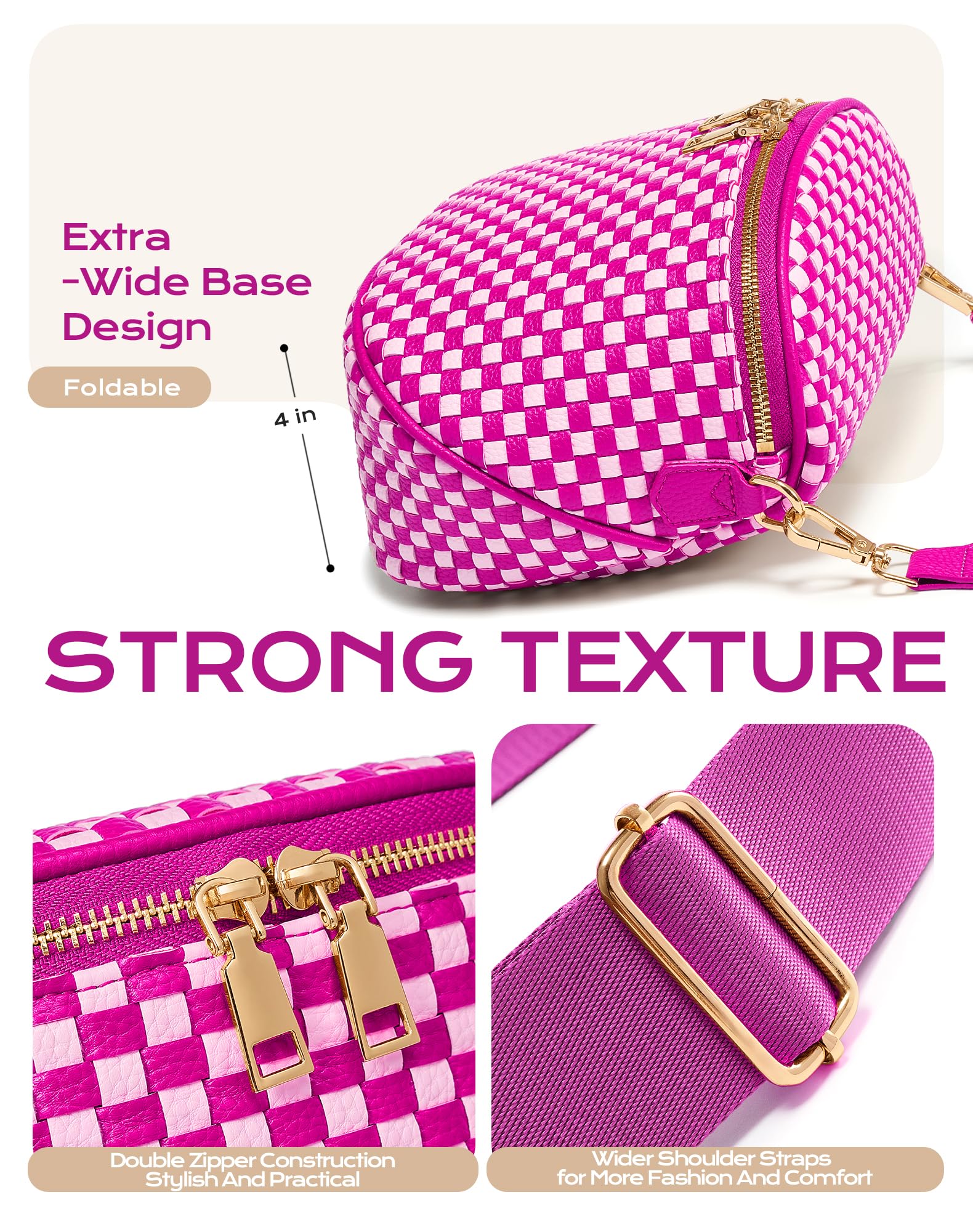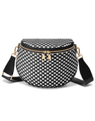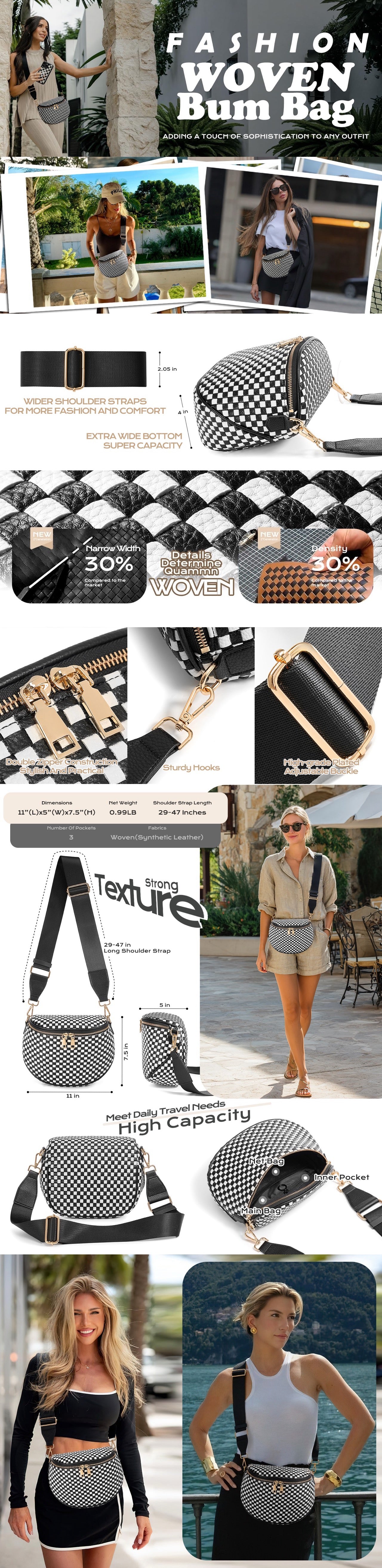 Ounamei Woven Checkered Crossbody Bum Bag | Trendy PU Leather Belt Bag with Adjustable Strap, Stylish & Versatile Everyday Companion
