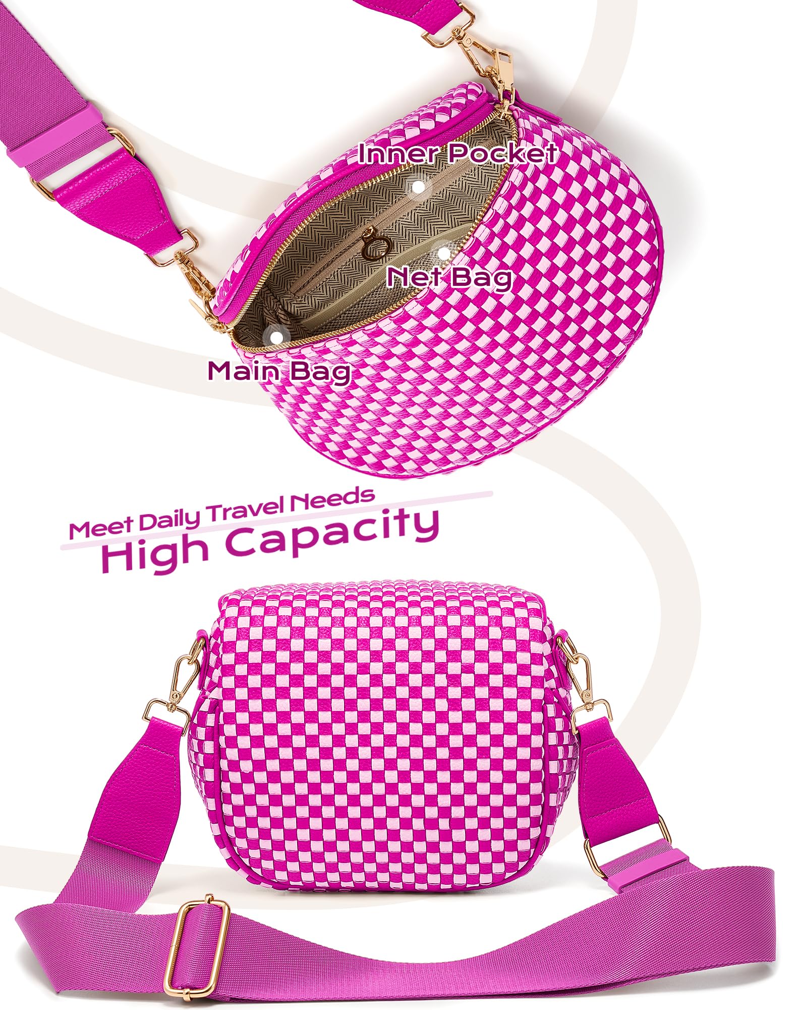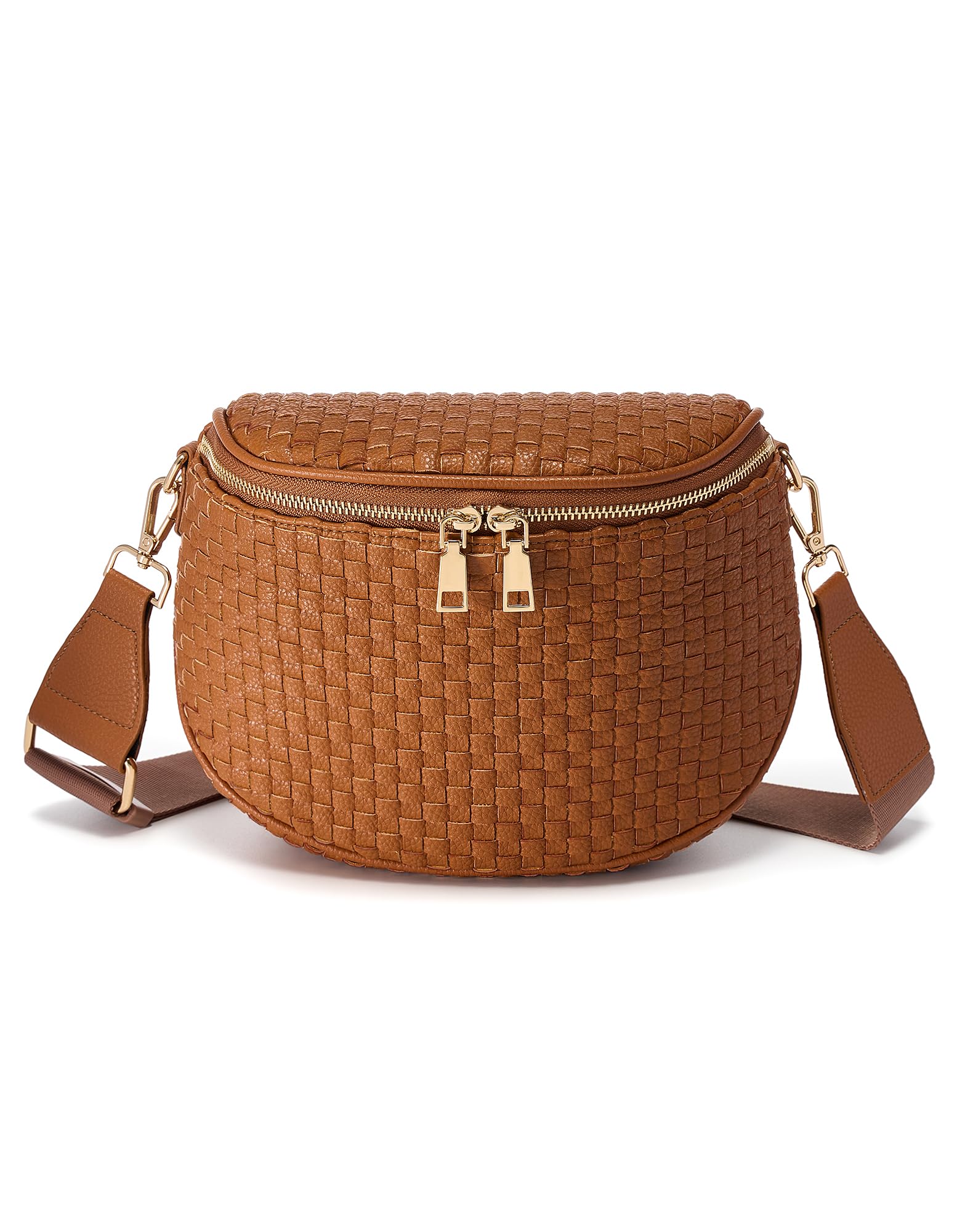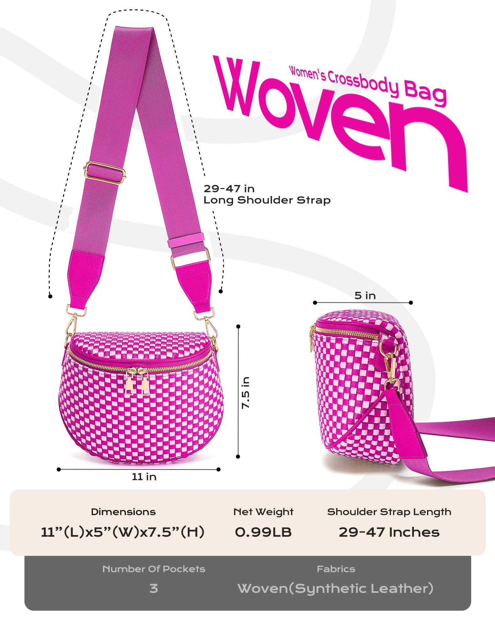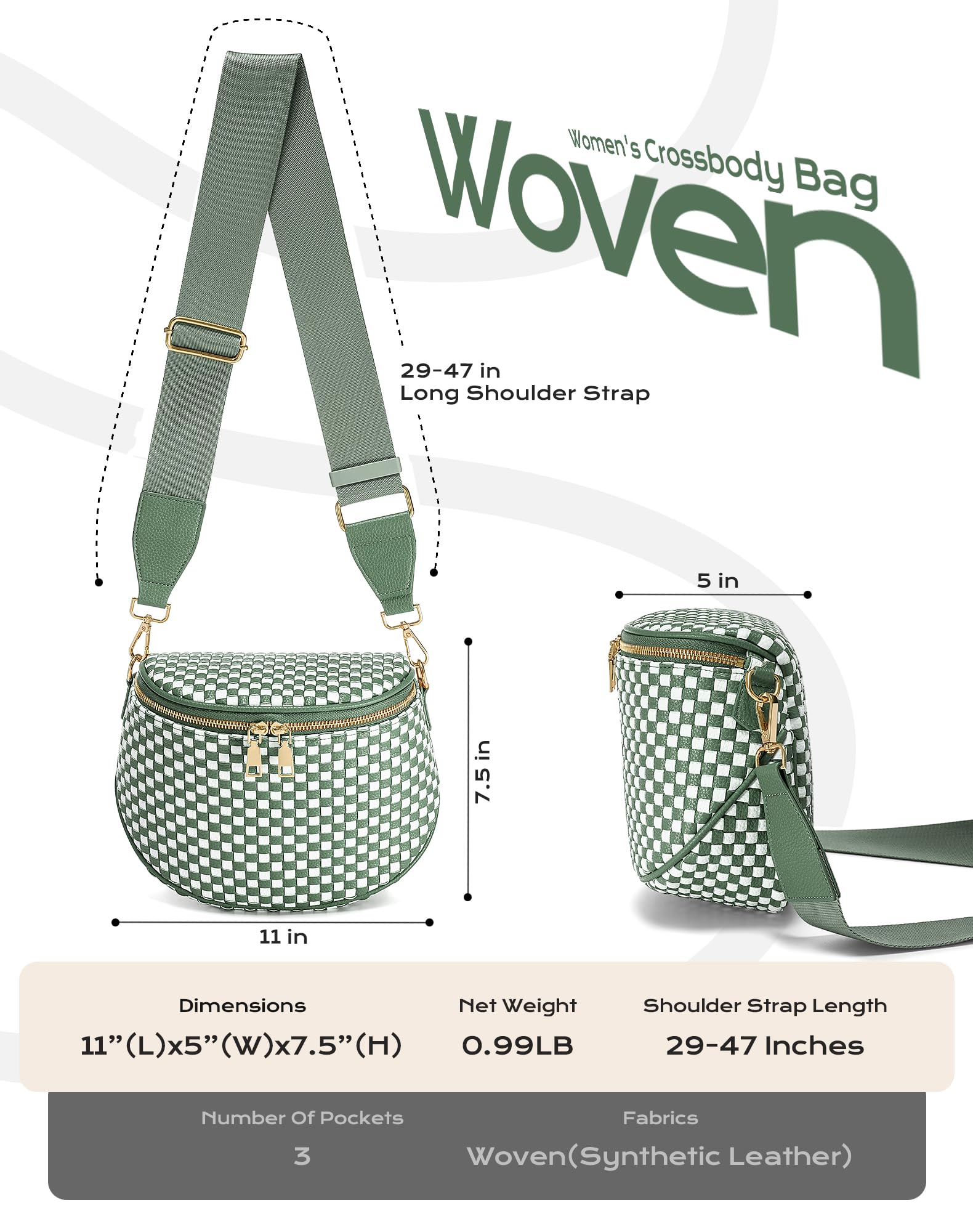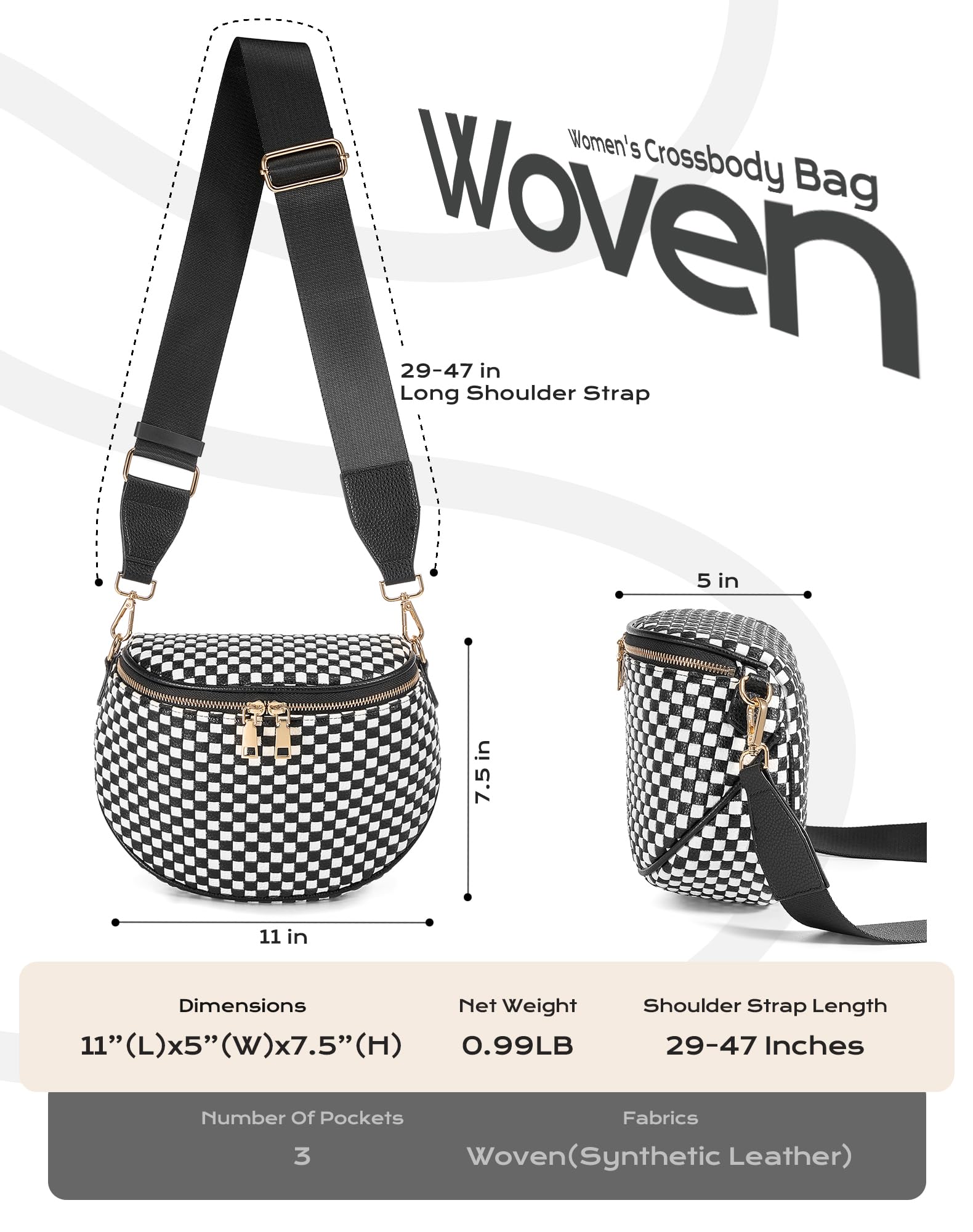 Ounamei Woven Checkered Crossbody Bum Bag | Trendy PU Leather Belt Bag with Adjustable Strap, Stylish & Versatile Everyday Companion