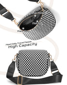 Crafted from woven PU leather in a timeless checkered pattern, this bag blends modern charm with classic appeal. Its textured finish and gold-tone hardware create a statement look that complements both casual and dressy outfits.